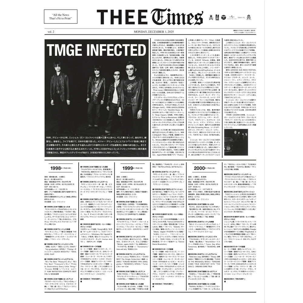 - ミッシェル・ガン・エレファントのフリータブロイド「THEE TIMES vol.2」に編集協力として参加